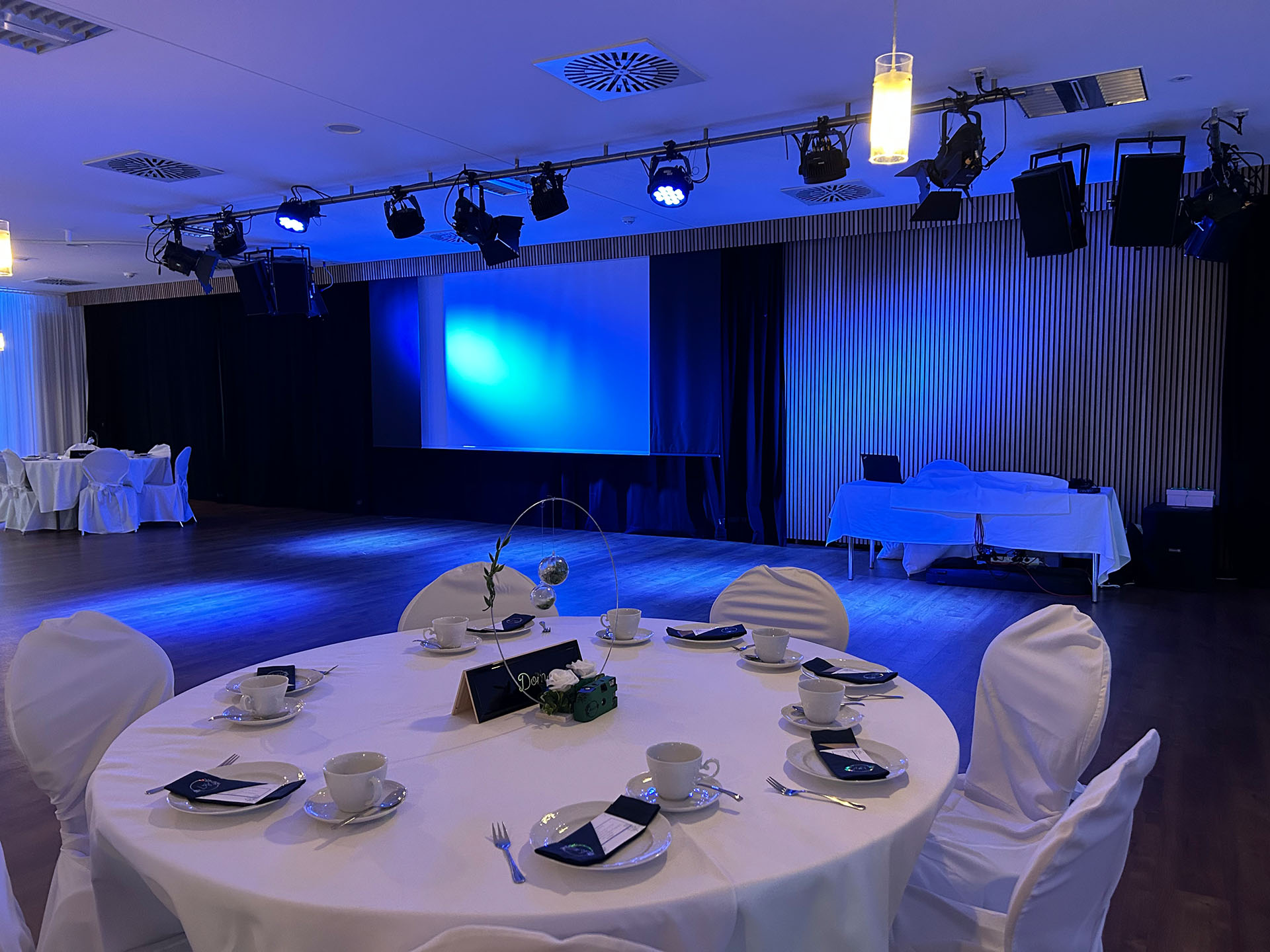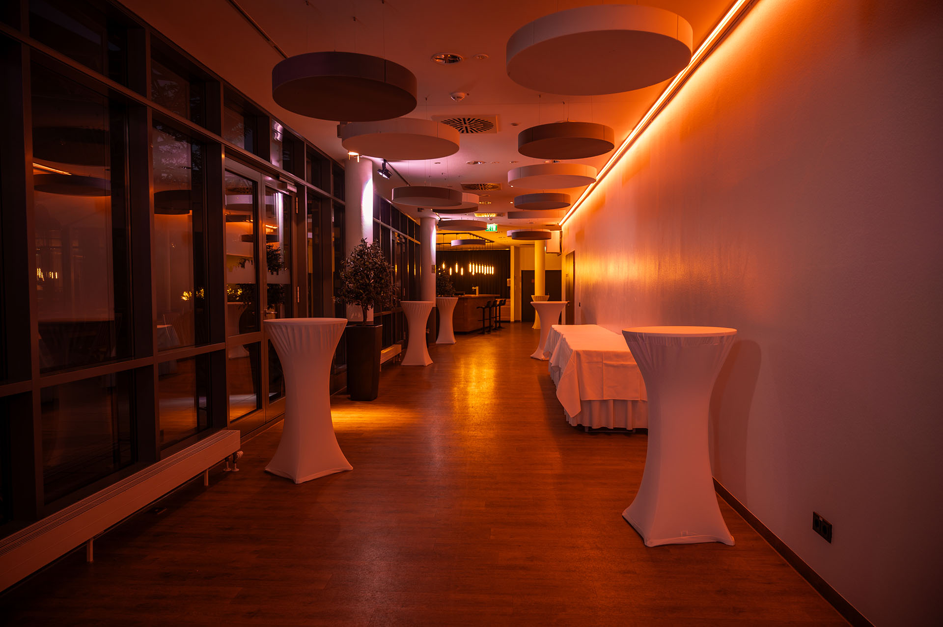 Als Bankettsaal eignet sich das Forum für bis zu 200 Gäste. Runde Banketttische und vielfältige Beleuchtungsmöglichkeiten verleihen Ihrem besonderen Event eine festliche Atmosphäre.