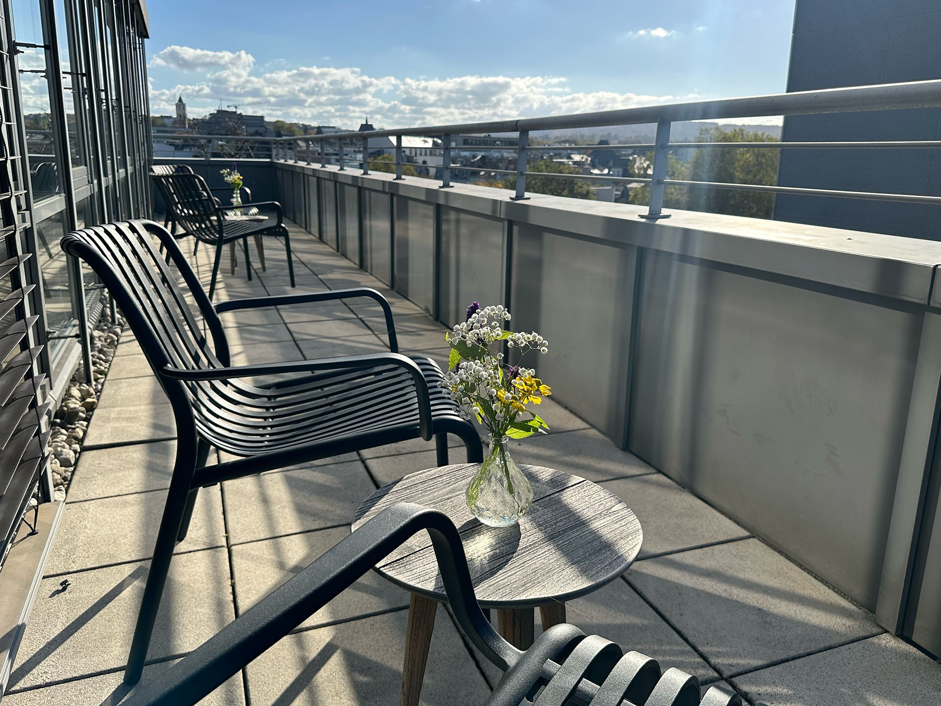 Zwischen Dom und Rathaus gelegen, bietet die 170 m² große Dachterrasse Ihnen und Ihren Gästen ganzjährig das perfekte Ambiente für Erholungspausen bei der Arbeit oder Ihre Traumhochzeit. Entdecken Sie im Sommer das mediterrane Flair der Aachener Altstadt oder überraschen Sie Ihre Gäste im Winter mit Punsch und Glühwein unter freiem Himmel - Ihrer Phantasie sind keine Grenzen gesetzt.
